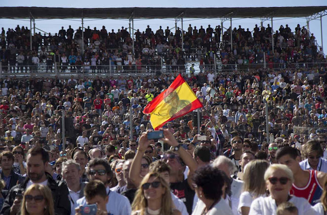 Las gradas está totalmente llenas con decenas de miles de entusiastas de las motos, por lo que las miles de personas más que han llegado durante la última media hora se han ubicado de pie en la zona próxima a la Curva Ángel Nieto, donde literalmente no cabe un alfiler.