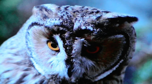 Frame from the screen of a 32´ Sony Bravia High Definition LCD TV playing the DVD number 18 (of a total of 26 including 124 chapters and 62 hours on Iberian, Venezuelan and Canadian Fauna) devoted to the Iberian Night Prey Birds of The Man and the Earth by Dr. Félix Rodríguez de la Fuente.