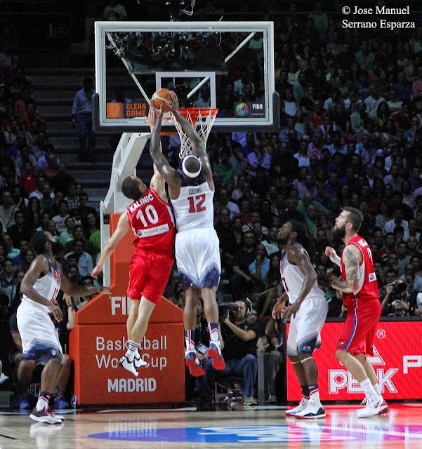 Mike Krzyzewski, paying top attention to every detail of the game and giving instructions in loud voice to his players. Coach K (an extraordinary coach who has won two Olympic Games - Beijing 2008 and London 2012- , two FIBA Basketball World Cups - Turkey 2010 and Spain 2014- and nothing less than four NCAA United States Championships with Duke University) didn´t relax an instant during the whole match, keeeping a big respect for the Serbian lineup, whom he could defeat with a difference of 37 points thanks to his great experience and a very wide assortment of resources enabling him to adapt to the most various game contexts that can arise and the laudable attitude of his men, sporting a remarkable collective sense of play on every single action, without ever feeling to be the winners in advance and making steady strenuous efforts in defense, from which being able to build both their fast breaks and static attacks. Needless to say that the psichological labor of this legendary coach with players like DeMarcus Cousins to draw their full potential paid off, basides giving minutes in this final game to players often not being in the starting lineup as mason Plumlee, whose fight tooth and nail for each ball was very useful for the team.