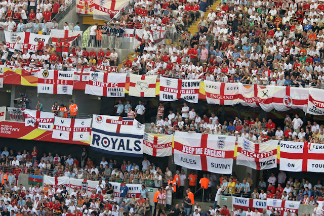 Flags and banners of the English supporters during the contest, a classical riveting sight.