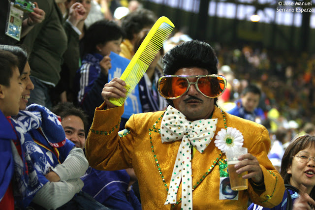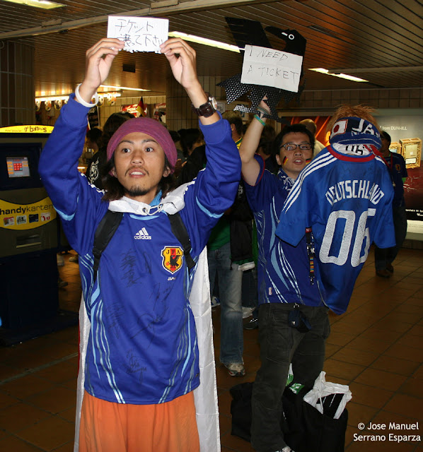 Here we can see two Japanese football fans who after having saved money throughout the previous year, couldn´t get tickets for the Japan vs Brazil match at Dortmund Stadium.