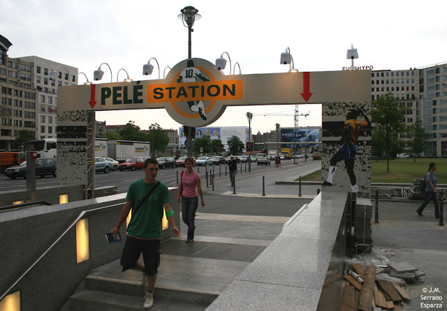 Berlin, June 29, 2006. Pelé Tube Station at Berlin Postdamer Platz. The legacy left by Edson Arantes Do Nascimento Pelé, the best football player of all time along with Diego Maradona, is immense, having won three World Cups (Sweden 1958, Chile 1962 and Mexico 1970) and having scored more than 1,200 goals with Santos and the Brazilian national team.