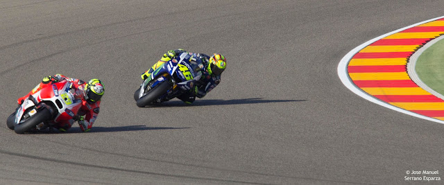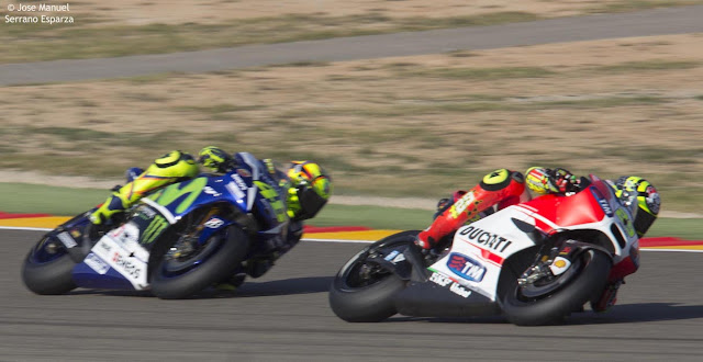 2) Andrea Iannone knows that he is going to suffer. Rossi is the best MotoGP pilot ever and features an outstanding ability to overtake in the bends, thanks to his long experience in a lot of battles and his exceptional ability when braking, often doing it later than the rest of pilots.
