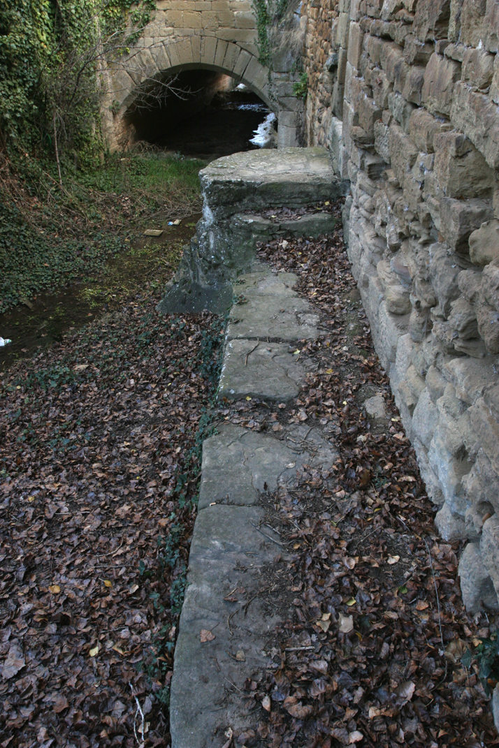 To get access to the small auxiliary door from the rivulet area (in the medieval times it was much more fast flowing than currently), a long and narrow walkway was built with large flat pieces of stone sporting remarkable width and relatively short height attached to the wall on the right and ending in a step and a large entrance platform, both of them likewise manufactured in stone.